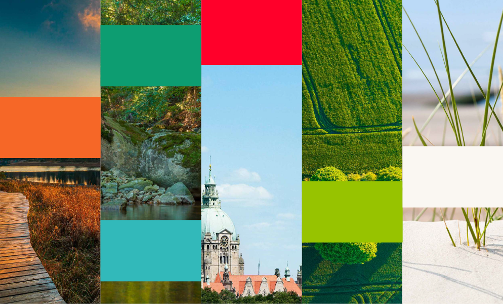 Das Land Niedersachsen ist mit der Farbe Rot immer präsent in der CD-Anwendung vorhanden. Die starke Farbe gibt Halt und wirkt aktivierend. Gleichzeitig ist darauf zu achten, sie nicht zu dominant einzusetzen, um etwa eine Verwechslung mit der Kommunikation der Staatskanzlei zu vermeiden.