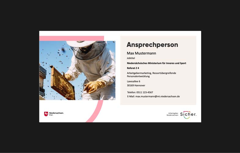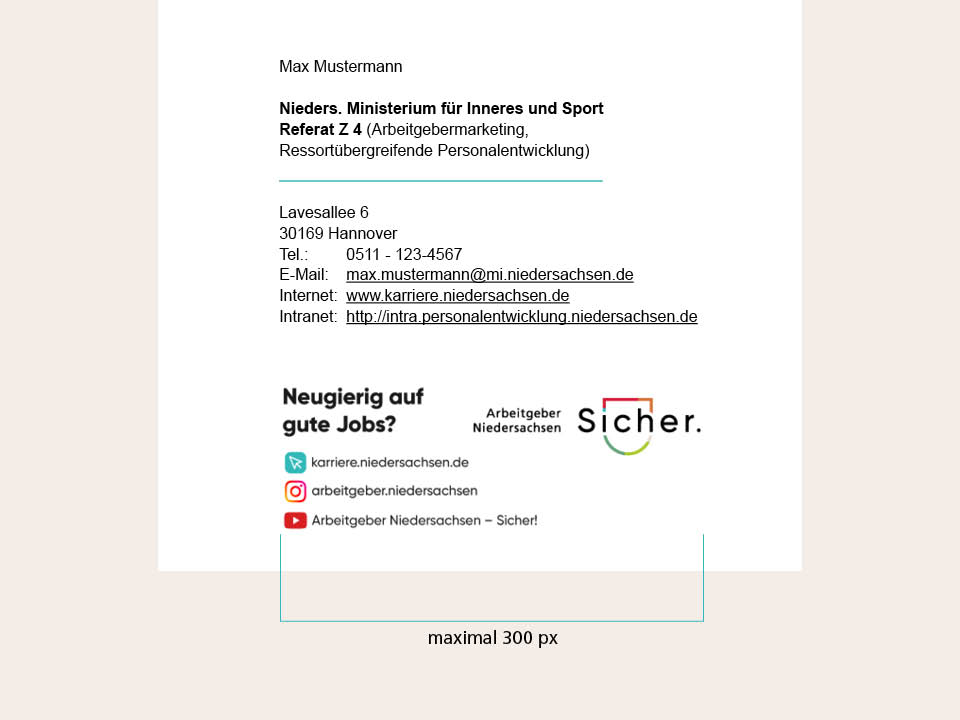Die Einbindung von Logo und Botschaft in die Mailsignatur stärkt durch die direkte Ansprache die Marke und Wahrnehmung und verlinkt direkt auf das Karriereportal, den YouTube-Account und den Instagram-Account.